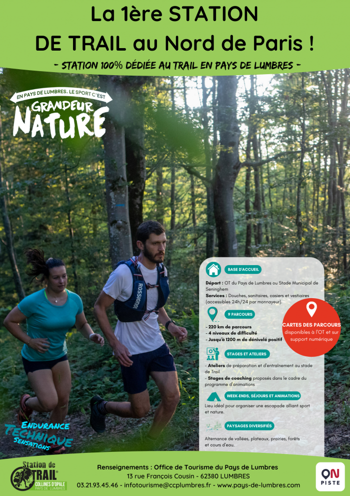Avec la Station de Trail de Lumbres, adhérente au réseau international, vous êtes certain de réussir votre expérience sportive ! À 1 heure de Lille, 15 minutes de Saint-Omer et 30 minutes de la Côte d’Opale, c’est le dépaysement total ! Au cœur du Parc Naturel Régional des Caps et Marais d’Opale, le Pays de Lumbres est célèbre pour ses reliefs, ses coteaux calcaires, ses forêts, ses cours d’eau, ses petits monts et ses vallées. Le top pour de véritables sensations trail, dans l’esprit un peu sauvage de la nature et avec une altitude sympathique pour se challenger.